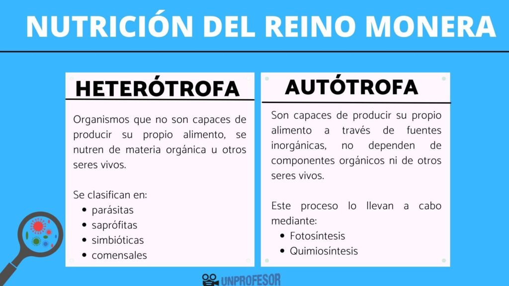 Las bacterias pueden tener nutrición autótrofa, que producen su propio alimento, o heterótrofa, que obtienen nutrientes del medio ambiente.