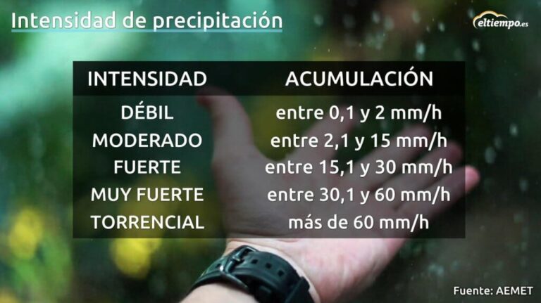 Se considera una lluvia intensa cuando caen más de 25 milímetros de lluvia en una hora.
