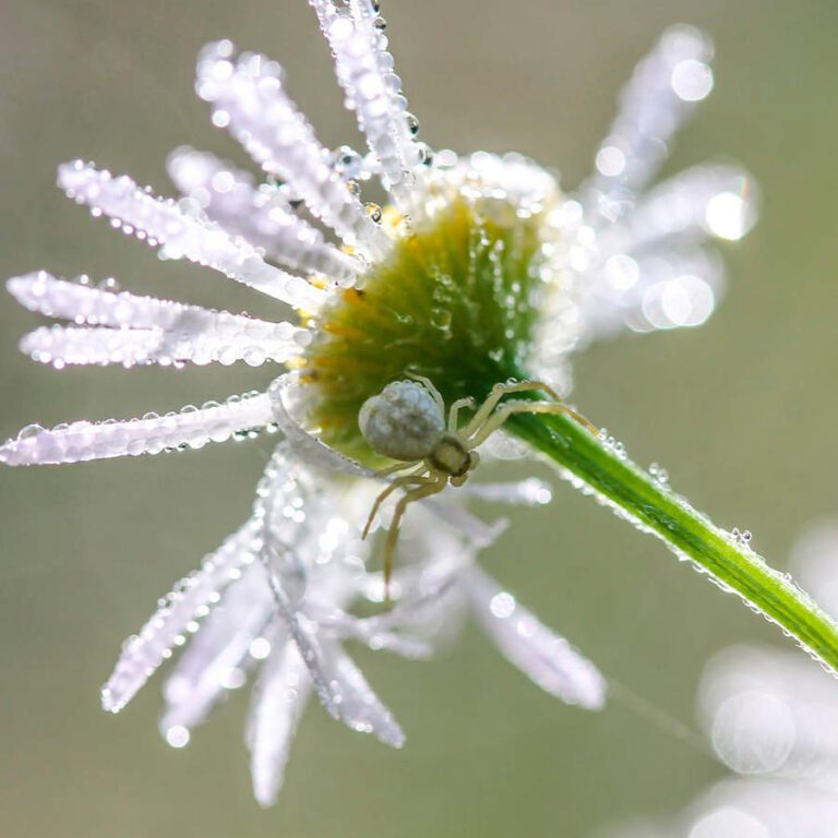- Hábitats: Estas arañas suelen habitar en lugares específicos donde pueden camuflarse fácilmente, como flores blancas o pétalos claros. Este hábitat les proporciona una ventaja evolutiva al mimetizarse con su entorno y evitar ser presa de depredadores.